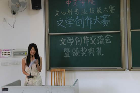 这次比赛主要分成四部分,分别是小说创作、古体诗创作、现代诗创作以及剧本创作,而莅临现场的分别是陈乐老师、申霞艳老师以及左岩老师。