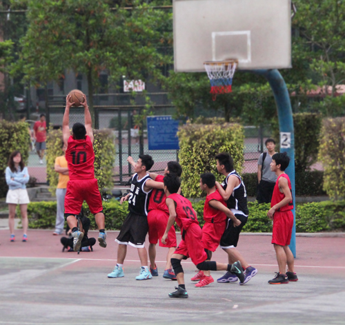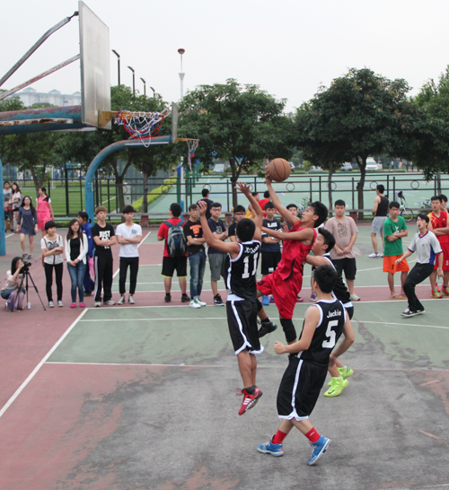 本网讯 4月15下午,中文男篮于北校篮球场迎来2014年广外杯篮球赛的淘汰赛,对阵国际男篮。比赛开始,中文开场表现不俗,快攻打出4:0的好开头,但国际队亦迅速反攻,两队比分胶着,直到第二节结束,双方战成24:31。